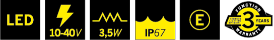 It operates at 10-40V DC, making it compatible with many vehicles. It is also E-approved according to ECE R148 (R7) and ECE R10. It is also covered by Strands Lighting Divisions’ market-leading 3-year function warranty.