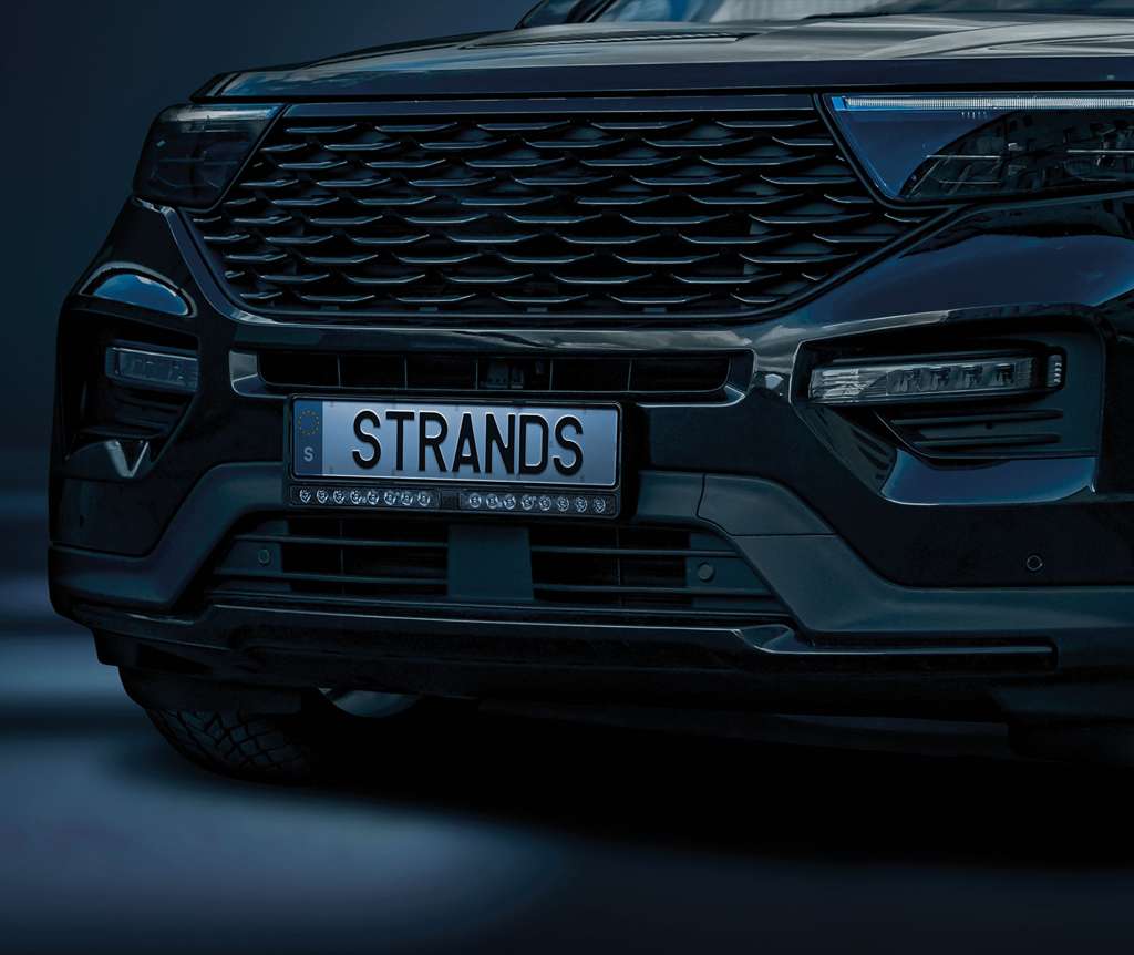 The double LED bar is seamlessly integrated into the license plate holder, where its gently curved design effortlessly blends with your car, becoming the perfect companion to your high beam. Whatever your needs, Nuuk E-line Duo will elevate the safety of your driving. The timeless elegance of the design will adjust smoothly to your car's visual expression, making it suitable for a wide range of drivers.