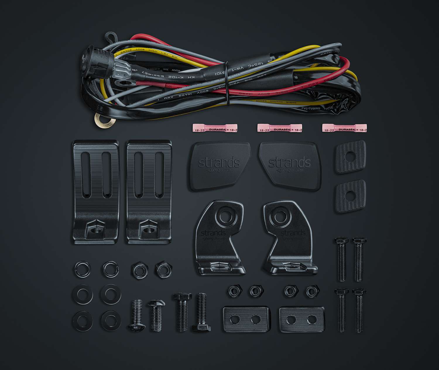 - Included in package Side brackets, Hanging brackets, Washers, Bolts, Rubber pads, Strands logo rubber covers, Cable harness for XBB, Duraseals