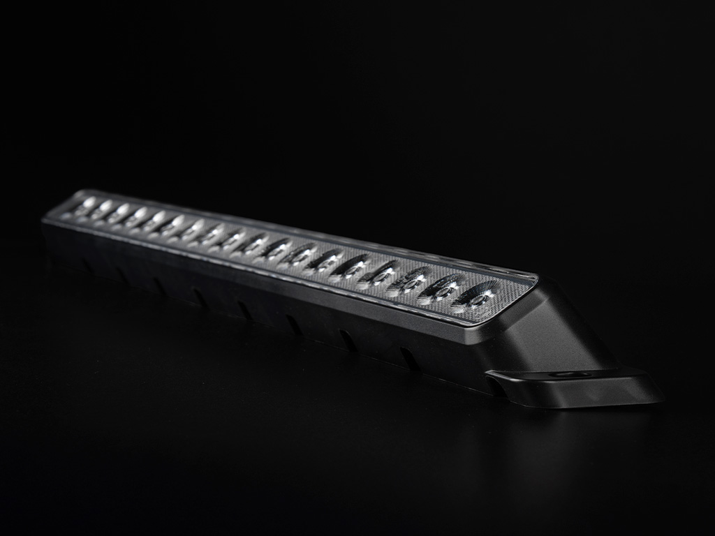 There’s a Nuuk E-Line for all drivers. The simple installation, built-in relay, and user-friendliness are perfect for nighttime driving in any condition. Nuuk E-Line (Part No. 809135) has a single light source, as has the Low Profile (Part No. 809134), a single LED bar without the license plate holder. The Duo (Part No. 809138) and Duo DK (Part No. 809139) have a double light source, are E-approved with reference number 2X20.