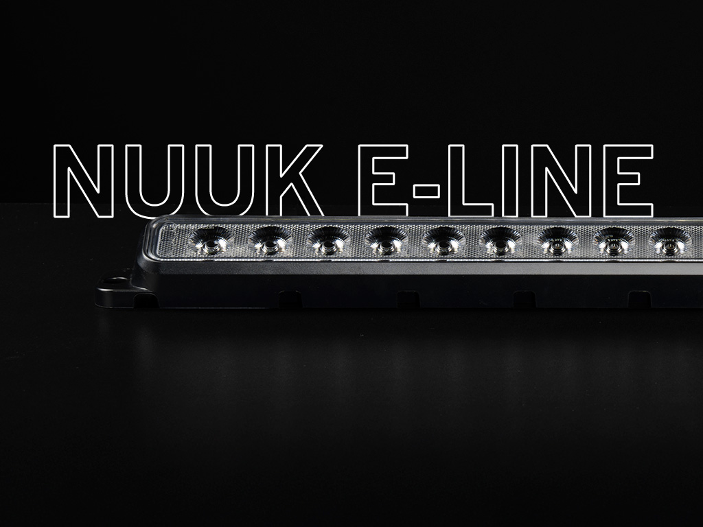 There’s a Nuuk E-Line for all drivers. The simple installation, built-in relay, and user-friendliness are perfect for nighttime driving in any condition. Nuuk E-Line (Part No. 809135) has a single light source, as has the Low Profile (Part No. 809134), a single LED bar without the license plate holder. The Duo (Part No. 809138) and Duo DK (Part No. 809139) have a double light source, are E-approved with reference number 2X20.