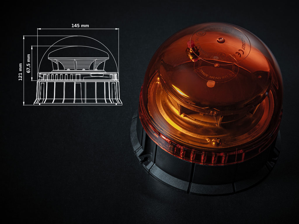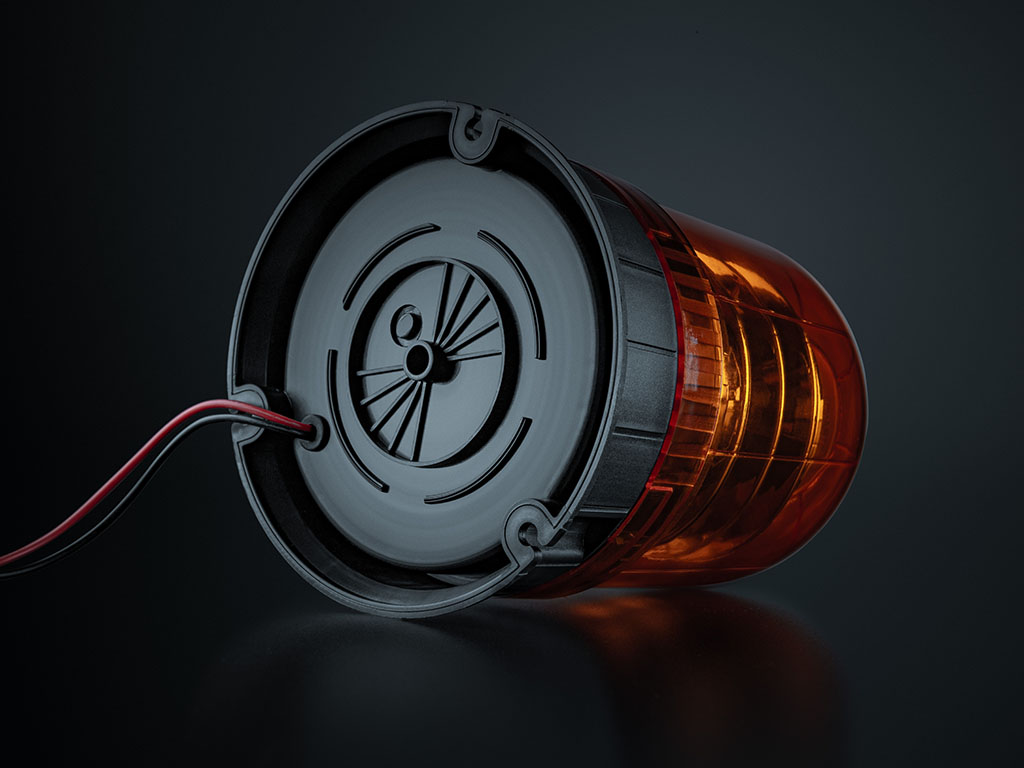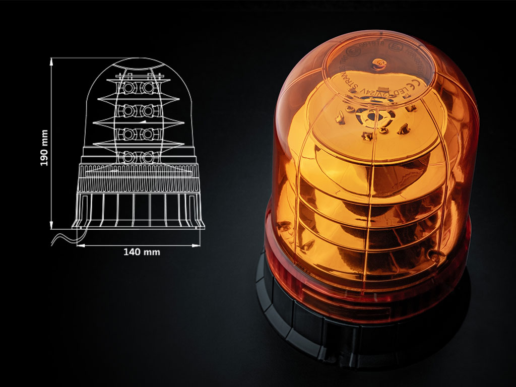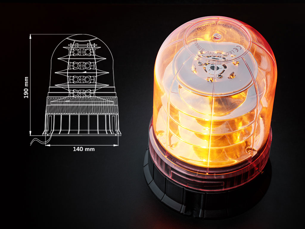 Thanks to the durable materials, ABS and polycarbonate, the Big Energy rotating beacon is protected from corrosion.