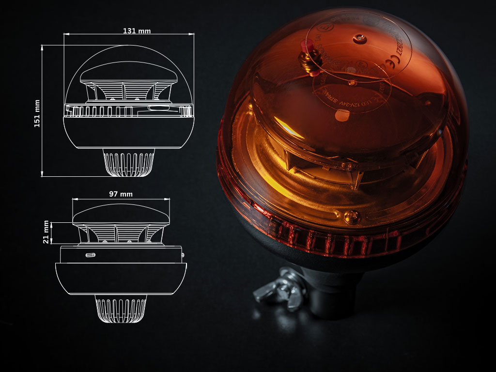 A classic look with smooth lines. Now, you can find a solid style with amber or clear leans combined with warm white or amber LEDs. It has all the functionalities you need and is easy to use with three warning light patterns: rotating, single, and double flash. The classic look is a good-looking addition to any vehicle, and the high quality guarantees lasting style.