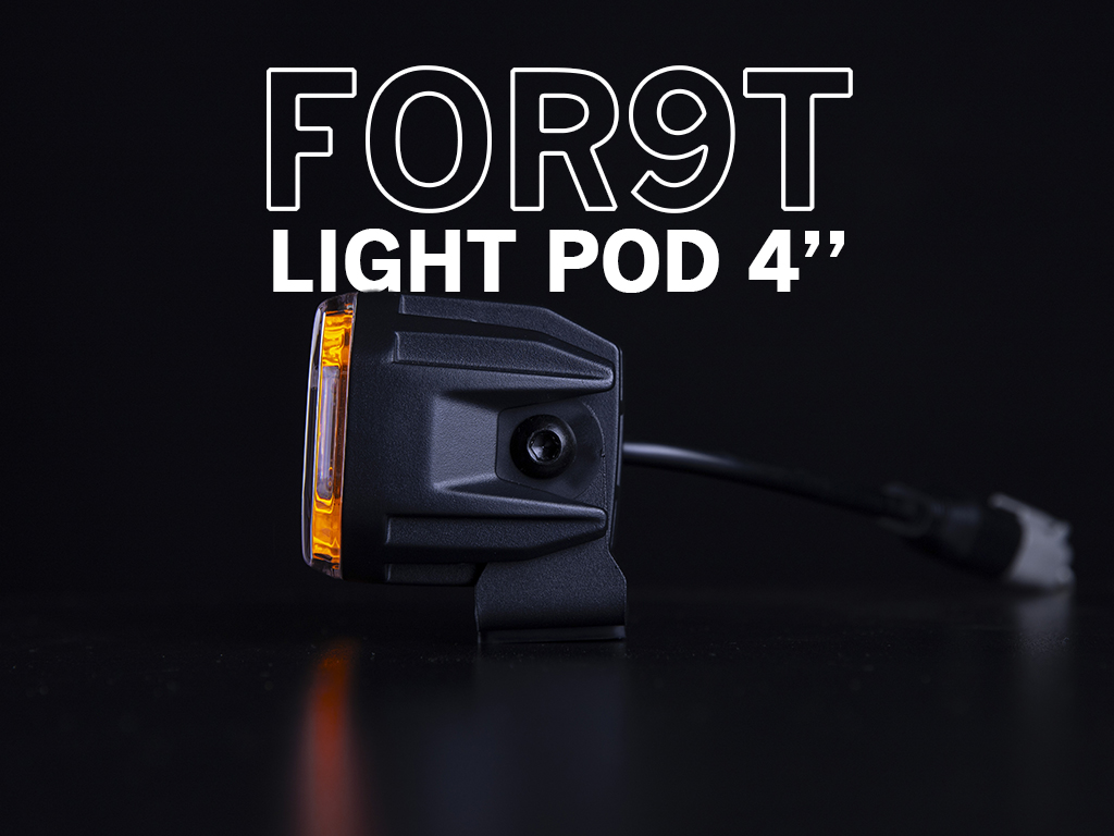 FOR9T-serien kombinerar funktionalitet och teknologi med en oväntad design. Den unika designen av positionsljus ger ett nytt och iögonfallande utseende. FOR9T light pod är ett iögonfallande tillskott till FOR9T, och har samma karakteristiska utseende på positionsljusen. De hypnotiska linjerna på det vita och orange positionsljuset drar dig in i framtiden. Välj bland ett brett utbud avprodukter för att få en komplett look för vilket fordon som helst.