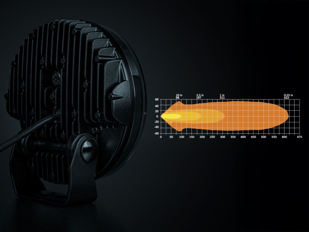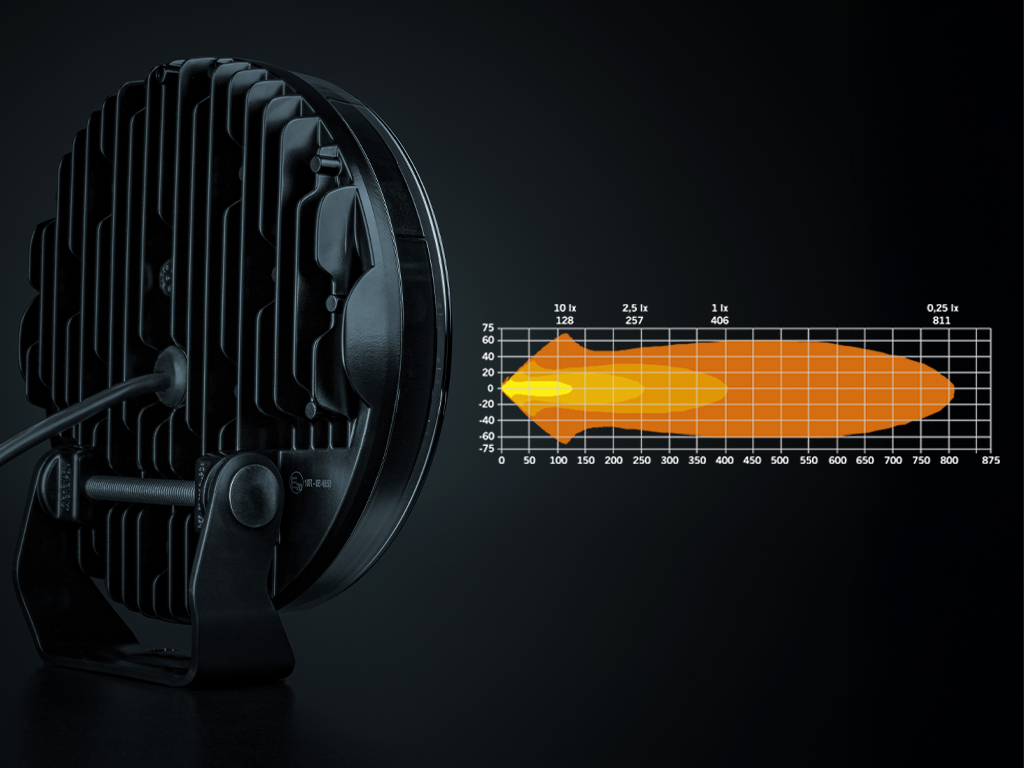 Freedom MP 9″ har en ljusstyrka som presterar 13 400 lumen, och i kombination med 5700 kelvin i färgtemperatur säkerställs en ljusbild som är både stark och behaglig. Den optimerade ljusbilden på 1 lux @ 406 meter, ger en hög synlighet framåt