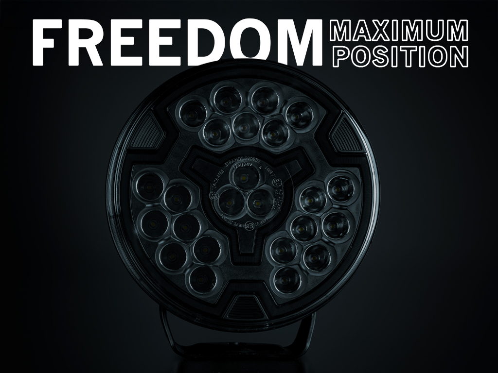 Förstärk din stil till max. Freedom Maximum Position är ett rejält extraljus, framtaget för att passa extra bra på tyngre fordon som jeepar och lastbilar. Den stora ljusstyrkan och det mörka positionsljuset garanterar en iögonfallande stil och hög synlighet. Det finns i två modeller, 7″ (Art. Nr. 270933) och 9″ (Art. Nr. 270935), där 9″ har Freedom loggan i centrum.